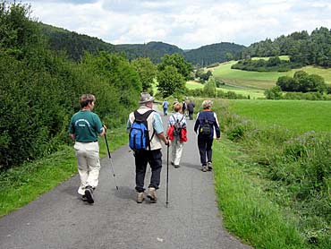 Der Wander- u. Heimatverein in Frankenau feierte am 7. Juli 2007 sein 25 - jähriges Vereinsbestehen. Aus diesem Anlass wurden die befreundeten Wandervereine zu einer Sternwanderung eingeladen. Aus Rosenthal starteten bei sonnigem Wetter 10 Wanderer, einschl. Herbert Turian und Winfried Rink, von Ellershausen durch das Lengeltal und auf dem Eselsweg nach Frankenau in das Vereinsheim. | |