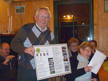 Der 1.Vorsitzende Herbert Turian begrüsste -36- Vereinsmitglieder in der neuen Seegerteichütte. Er verwies in seinem ausführlichen Bericht auf ein erfolgreich verlaufenes Wanderjahr 2010, obwohl der Hüttenbrand im Mai verganenen Jahres für den Vorstand und der Mitgliedschaft ein herber Schlag bedeutete. Turian ging in seinem Jahresbericht auch hierauf ein und zeigte sich erfreut über den schnellen Aufbau des Wanderdomizils. Mit seinem Vize Winfried Rink und Bürgermeister Hans Wassmuth sei einiges schnell angegangen worden um den Wiederaufbau der Hütte zu beschleunigen. Im Wanderjahr 2010 wurden neun Halbtagswanderungen, vier Tageswanderungen und zwei Mehrtageswanderungen mit insgesamt 290 Kilometern bei einer Beteiligung von 390 Wanderern durchgeführt. An vier Wanderer-Treffs nahmen 48 Vereinsmitglieder teil. Höhepunkte waren die Wanderfahrt ins Zittauer Gebirge im Mai und die Rucksackwanderung in den Dolomiten mit Durchquerung des Rosengartens" im Juli. Leider musste das traditionelle 19. Seegerteichfest wegen des Hüttenbrandes ausfallen. Die Jubiläumsveranstaltung 10 Jahre Verein für naturnahe Erholung" und die Einweihung der neuen Seegerteichhütte mit Sternwanderung der Nachbarvereine sowie die Uebergabe der Zertifizierungs-Urkunde der Extratour Franzosenwiesen" konnte am 26.09.2010 gefeiert werden. Ebenso konnte der Volkswandertag am 14.08.2010 erfolgreich durchgeführt werden. In seiner Vorschau auf das Wanderjahr 2011 verwies Turian unter anderen auf die Weserbergland-Wanderung auf dem Ith-Kamm" am 08.Mai 2011 und auf die Wochenend-Wanderfahrt zum Kaiserstuhl im Breisgau vom 01.-03. Oktober. Bei den anstehenden Neuwahlen wurden Herbert Turian, sein Vize Winfried Rink und Schatzmeister Hans Wassmuth einstimmig in ihren Aemtern bestätigt. Helmuth Vaupel scheidet nach 28 Jahren Schriftführertätigkeit auf eigenen Wunsch aus dem Vorstand aus. Sein bisheriger Stellvertreter Adolf Arnold übernimmt das Amt. Vaupel bleibt als Pressewart weiter tätig und wird sich künftig verstärkt für die Umsetzung des Projekts Grenzsteinwege als Themenwege" um Rosenthal einsetzen. Ueber das bisher Erreichte informierte er ausführlich. Schatzmeister Hans Wassmuth erläuterte seinen Kassenbericht, Wegewart Kurt Wischnewski gab einen Wanderwegezustandsbericht und legte sein Amt nieder. Wegewart Hermann Möscheid wird künftig von Erwin Peter unterstützt. Vize-Schatzmeister bleibt Frank Wittenborn, Gisela Löber wird Vize-Schriftführerin. Kulturwart bleibt Günter Klingelhöfer, Hermann Möscheid und Alfred Tripp-Noll wurden zu Beisitzer gewählt. Als Kassenprüfer wählte die Versammlung Alfred Tripp-Noll und Christian Nell. Wie in jedem Jahr, so wurde auch diesmal das Hüttenteam mit Gisela Kahler, Ursel Steffen, Gerhard Werner und Heinz Turian für ihren Einsatz geehrt und mit einem Blumengeschenk bedacht. Die Versammlung klang mit einem gemütlichen Beisammensein aus.