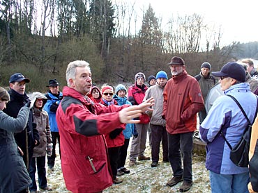 Zu einer Themenwanderung unter dem Motto"von der Quelle bis zum Hahn" hatte der Verein für naturnahe Erholung -Wandern- seine Mitglieder und Gäste eingeladen. Die Wanderführer Hans Waßmuth und Hermann Möscheid konnten zu dieser interessanten Exkursion -bei herrlichem Wanderwetter- eine große Wanderschar an der Seegerteichhütte begrüßen. Die Wasserversorgung der Stadt Rosenthal wurde bereits am 3. 6. 2010 -im Zusammenhang mit der Einweihung des neuen Marktbrunnens am Rathaus- vom Verein für Heimatpflege thematisiert und fand großes Interesse. Auf Informationstafeln wurde auf Planungen und Baumaßnahmen der im Jahr 1909 errichteten Wasserversorgung aufmerksam gemacht. Vor dem Jahre 1909 befanden sich innerhalb der Stadt nur vier öffentliche Brunnen, da viele Hauseigentümer und Bauernhöfe eigene Brunnen zur Versorgung hatten. Wegen der zu erwartenden Kosten -sowohl für die Baumaßnahme als auch für die spätere Nutzung- gab es Schwierigkeiten das Projekt umzusetzen. Doch die Vorteile, wie Schutz vor Verseuchung, ausreichender Druck bei Brandbekämpfungen und häusliche Erleichterungen überzeugten die Skeptiker und Gegner der Planung. Die Wanderung bot die Gelegenheit, von den sachkundigen Wanderführern, die Abläufe und Einrichtungen zu erfahren und örtlich zu besichtigen. Bereits auf dem Weg zum Quellgebiet nach Talhausen erfuhren die Teilnehmer einiges über schützenswerte Bäume in der Feldgemarkung. Der erste Höhepunkt war der Blick in den geöffneten Brunnenschacht, wo sich die Wanderer von der starken Ausschüttung der Quelle überzeugen konnten. Wanderführer und Bürgermeister Hans Waßmuth berichtete Einzelheiten über die Menge, Qualität und Herkunft des Quellwassers und beantwortete Fragen der Teilnehmer. Der starke Überlauf der Quelle fließt in den nahen Fischbach. Parallel zur Wasserleitung führte die Wanderstrecke in Richtung Rosenthal. Ursprünglich wurde die Wasserleitung zum alten, 1909 errichteten, Hochbehälter geführt. Durch die Bebauung höher gelegener Neubaugebiete konnte die Wasserversorgung nicht mehr sichergestellt werden. Es wurde eine Druckpumpen - Station und ein neuer Hochbehälter erforderlich. Nach der Besichtigung der Pumpstation an der Willershäuser Straße erfolgte ein steiler Anstieg zum neuen Hochbehälter am Lohberg. Auch hier waren die Teilnehmer überrascht von der Größe der Inneneinrichtung und der zu- und abfließenden Wassermenge. Als letzte Station führte die Strecke zum Gänseberg, wo der tieferliegende, alte Hochbehälter von außen besichtigt wurde. Obwohl er baulich verfällt, dient er heute noch als geeigneter Unterschlupf für Fledermäuse. Die letzte Station des Mottos: Der Hahn" wurde an der Seegerteichhütte erreicht, wo das Hüttenteam mit Gisela Kahler, Gerhard Werner und Ursula Steffen sowie weitere Gäste die Wanderer erwarteten. Nach einer guten Bewirtung bedankten sich die Wanderer bei den Wanderführern für die interessante Wanderung und bei dem Hüttenteam für die Bewirtung.