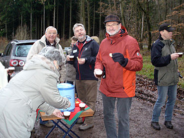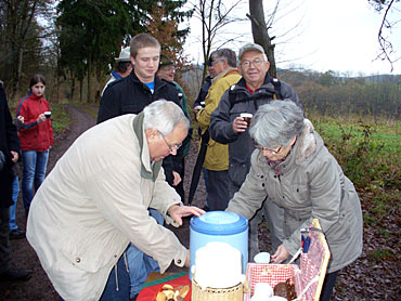 Zur traditionellen Adventwanderung hatte der Verein für naturnahe Erholung -Wandern- Rosenthal seine Mitglieder und Gäste eingeladen. Unter der Führung von Günter Klingelhöfer und Herbert Turian starteten 24 Wanderer an der Seegerteichhütte zu einer 6 km langen Rundwanderung im Burgwald. Leider fehlte in diesem Jahr die schneebedeckte Winterlandschaft. Für eine Überraschung sorgten der Wanderführer Heinz Turian und seine Frau Gisela am Waldparkplatz, als sie mit heißem Glühwein, Kinderpunsch und Weihnachtsplätzchen die Wanderer empfingen. Nach kurzer Rast führte die Wanderstrecke zurück zur Seegerteichhütte, wo das Hütten-Team mit Gisela Kahler, Ursel Steffen und Gerhard Werner sowie weitere Gäste auf die Ankunft der Wanderer warteten. In der weihnachtlich geschmückten und warmen Hütte wurden alle Teilnehmer mit Kaffee und Kuchen bewirtet. Wanderwart Herbert Turian begrüßte die Anwesenden und gab Erläuterungen zu den geplanten Wanderaktivitäten das Jahres 2014. Einen besonderen Dank sprach er den beiden Wanderführern Günter Klingelhöfer und Heinz Turian sowie dem Hütten-Team mit Gisela Kahler, Ursel Steffen und Gerhard Werner aus.