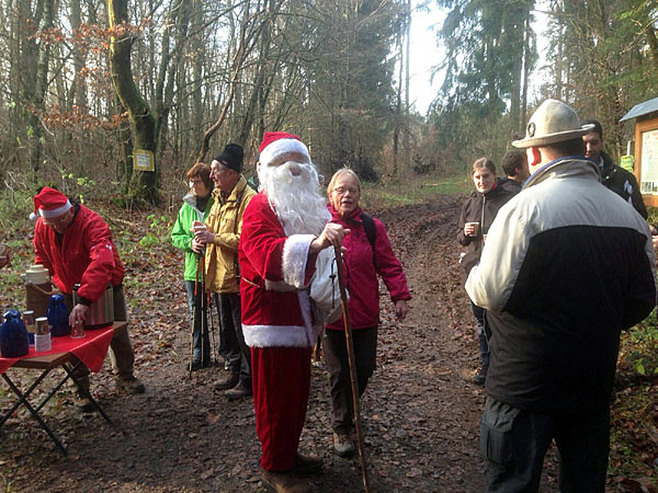 Der Verein für naturnahe Erholung -Wandern-" in Rosenthal führte am Nikolaustag seine traditionelle Adventswanderung durch. Der Einladung folgten 23 Wanderer, darunter Familien, Jugendliche und Senioren. Bei dem für diese Jahreszeit sehr milden Wetter ging es auf der ca. 5,5 km langen Strecke mit geringer Abweichung vom Verlauf des Rosenthaler Rundweg 1" über Flure mit den alten Flurnamen wie Unten im Seeger", Oben im Seeger", an der in einer Waldsenke liegenden Sickerquelle Knöppelsborn" vorbei durch den ansteigenden Wald Richtung Wetterweg". Unterwegs stellte sich der Nikolaus (Gerhard Werner) in den Weg der Wandergruppe und schenkte jedem Wanderer einen Schokoladen - Nikolaus. Gisela und Heinz Turian verteilten selbst hergestellten heißen Punsch und Plätzchen. Am Wetterwegblick" bot sich den Wanderern ein wunderschöner Panoramablick auf die Stadt Rosenthal, ihren nördlich gelegenen Stadtteil Willershausen, und ihre Umgebung mit dem Galgenbaum" bis zu den Höhen des Kellerwaldes mit dem Hohen Lohr. Auch das Wohratal lässt sich von hier aus gut erkennen. Durch die Flur Der Schießbach" über den Brachter Pfad" und den Hainbachsweg" war das Ziel, die Seegerteichhütte, bald erreicht. Hier trafen die Wanderer auf Vereinsmitglieder und Gäste, die sich zum gemütlichen Beisammensein mit Kaffee, Kuchen sowie weiteren Speisen und Getränken eingefunden hatten. Der Vereinsvorsitzende Karl-Walter Lay dankte den Teilnehmern für ihr Kommen, den Wanderführern Günther Klingelhöfer und Heinz Turian, sowie Gisela Turian für die Organisation und die Durchführung der Wanderung. Ebenso dankte er den Hüttenwarten Gisela Kahler und Gerhard Werner mit ihrem Team Gisela Turian und Michelle Tripp-Noll für die geleistete Dienste. Die nächste Wanderung des Rosenthaler Wandervereins ist die Traditionelle Jahresabschlusswanderung" mit ca. 8 km. Sie findet am Sonntag, den 27.12.2015 um 13:00 Uhr statt. Start und Ziel ist die Seegerteichhütte. Auch hier schließt sich ein gemütliches Zusammensein an. Zu dieser Veranstaltung sind, wie zu fast allen anderen, nicht nur Vereinsmitglieder, sondern alle Bürger aus Rosenthal und Umgebung - insbesondere auch aus den Stadteilen Roda und Willershausen - als Gäste herzlich willkommen. Die öffentlichen Veranstaltungen des Vereins sind in dem Wanderplan 2016" enthalten, der in der Öffentlichkeit verteilt wird (Geschäfte, Banken) sowie auf der Internetseite des Vereins www.seegerteichütte.de .