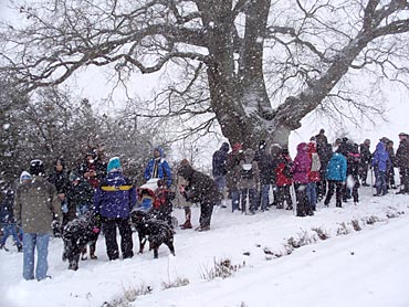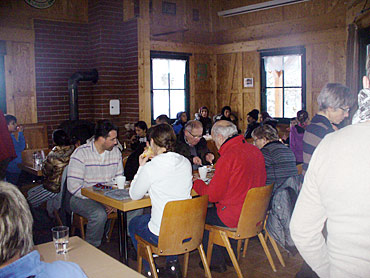 Der Verein für naturnahe Erholung -Wanden- Rosenthal hatte zur ersten Wanderung in das neue Wanderjahr eingeladen. Da die Rosenthaler Flüchtlinge und Asylbewerber sich nur zögernd in Vereinen und an öffentlichen Veranstaltungen beteiligen, hatten der Vorsitzende Karl - Walter Lay und der Wanderführer Hans Waßmuth die Idee, diese Familien mit Kindern zur Startwanderung einzuladen. Mit großer Freude und Erstaunen aller Wanderer konnten sie unter den 62 Teilnehmern auch 20 Teilnehmer der eingeladenen Gäste an der Seegerteichhütte begrüßen. Eine Bereicherung war die große Anzahl von Kindern, die bei einsetzendem Schneefall viel Spaß und Abwechslung in die große Wandergruppe brachten. Auf der 6 km langen Wanderstrecke durch die Feldgemarkung von Rosenthal gab es ausreichend Gelegenheit zu gemeinsamen Gesprächen, bei denen die Kinder sich öfter als Dolmetscher betätigten. Aufgrund des starken Schneefalls und des Zustands der Wege wurde eine Abkürzung der Wanderstrecke vorgenommen. Ein weiterer Höhepunkt des Wandertages war die gemeinsame Einkehr in der warmen Seegerteichhütte, die schon lange nicht mehr einen so großen Ansturm erlebte. Das Hüttenteam mit Gisela Kahler, Heike Szpanka, Adelheid Lay und Gerhard Werner hatten alle Hände voll zu tun um die große Teilnehmerzahl zu bewirten. Der Vorsitzende Karl - Walter Lay bedankte sich bei den Wanderführern Hans Waßmuth und Erwin Peter für die gute Vorbereitung und Organisation und bei allen Teilnehmern für ihr Erscheinen zum Start in ein neues Wanderjahr.