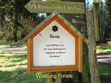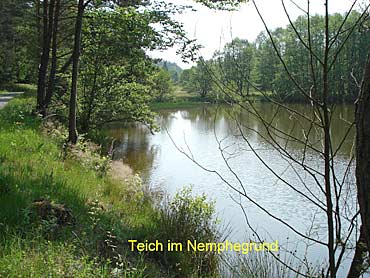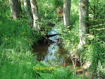 (Km 37,5) (Abgang: X 1) (Zugang: Bo 2) Das Naturschutzgebiet Nemphetal" (334 m NN) ist ein naturnahes Waldwiesen-Bachtal mit anmoorigem Feuchtgrünland und vier grossen Waldteichen. Seltene Tier- und Pflanzenarten sind auch hier anzutreffen. Der etwa drei Kilometer lange Talzug mit standortgerechten Erlen sowie Holunder und Weiden entlang des Bachlaufs, ist ein besonderes Juwel" unter den Naturschutzgebieten des Burgwaldes. Zwischen Waldrand und Wiesen verläuft der Weg talaufwärts. Hier hört man ausser fernen Zivilisationsgeräuschen nur die wohlklingenden Stimmen der Natur. Erfreulich viele Ruherollen entlang der Nemphe-Strasse" laden zum Verweilen ein. (Abgang. B 02) Hier im Nemphe-Tal" beiderseits der Landstrasse L 3076 liegt das ausgegangene Dorf Forste". 1343 wird eine Villa Forst" genannt. In der damaligen Ortschaft befand sich auch eine Kirche, worauf der Flurname Forstkirche" zurückzuführen ist. Im Dorf hatte auch ein Förster seinen Wohnsitz. Dieser musste für die Vorbereitung der landgräflichen Jagden sorgen. Längst ist das sprichwörtliche Gras über die Wüstung gewachsen, doch wird heute noch an der Forstkirche" jedes Jahr zu Himmelfahrt von den Kirchengemeinden Bottendorf, Willersdorf und Rosenthal-Willershausen ein Waldgottesdienst abgehalten.